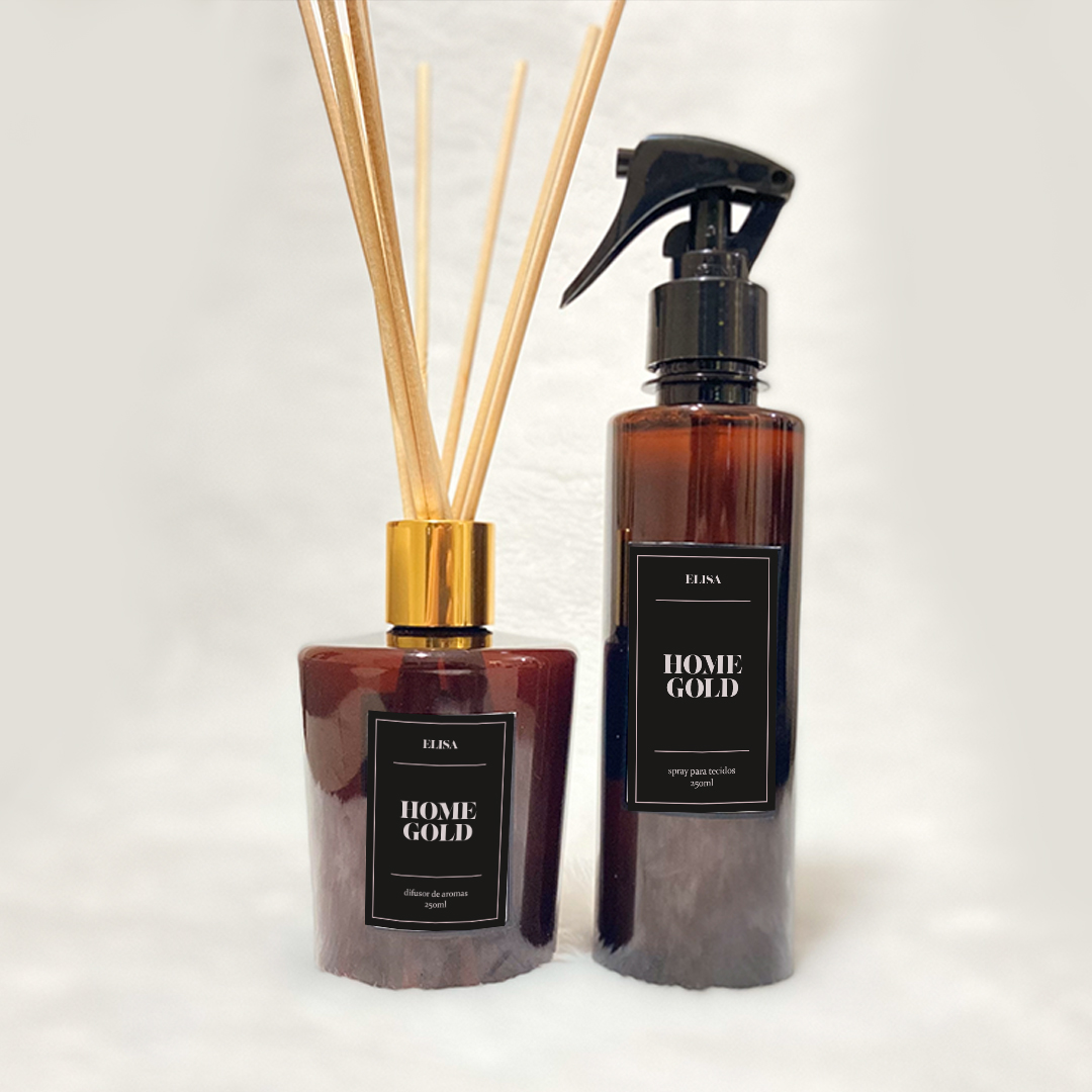 Spray para Tecidos: Nosso Spray para Tecidos aroma Home Gold é como um abraço caloroso para suas roupas e ambiente.